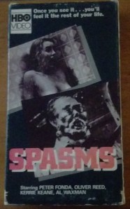 I got this tape in a shipment sent to my husband by a friend of his who is downsizing his collection of tapes. Most of the tapes are old wrestling dubs, but there’s some high weirdness we’ll get to as well. Spasms is on HBO video, is somewhat rare (I believe, from a cursory search of available tapes online), but is quite fairly obscure because it kind of sucks. Someone called THE VIDEOMAN has kindly edited together a highlight reel and uploaded it, and that’s all you need to watch.