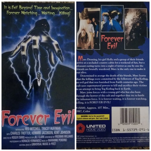 Most of all, I love that I first saw this back when Netflix was mainly used for checking out physical discs, back in 2007, and that rental coincided with a particularly low period in my life. I know that sounds strange, but for me I am so introspective that I value all my experiences and the processes of going through them. When I found Forever Evil I was just getting seriously into horror as a way to work out aggression, an aggression which I no longer feel, and yet this movie provided me a mellow and dark mood that I still feel nostalgic for. This mood persists even when you watch this with the commentary track on while the writer and director chat about it. I can’t count the number I’ve watched Forever Evil, but I usually do watch it with that commentary track, and I respect everything they did and tried to do. Some of the best regional horror ever came out of Texas! Keep My Grave Open, The Abomination, and Forever Evil. Give me a Texas movie any day. I’ve got two VHS copies of Forever Evil, and I’d gladly buy more.